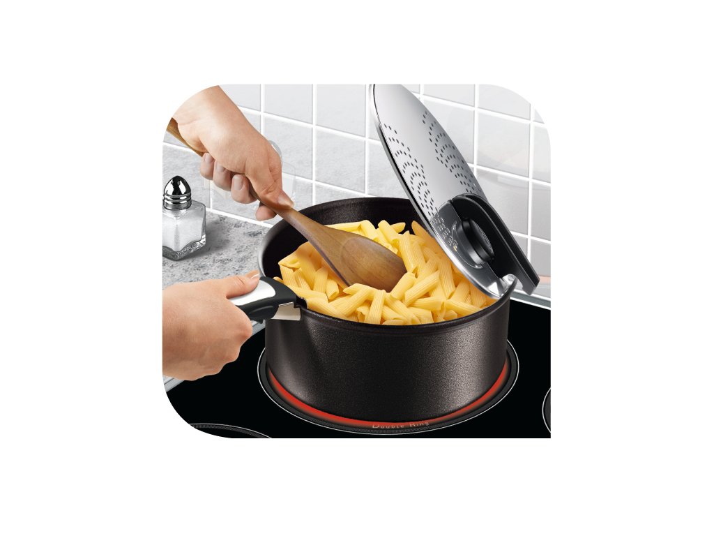 The high-quality world-famous brand Tefal now comes with the smart cookware collection Tefal Ingenio, which can't do without the practical straining lid. You can choose, for example, this stainless steel lid which is compatible with all 14, 16, 18 and 20 cm diameter pots from these ranges.