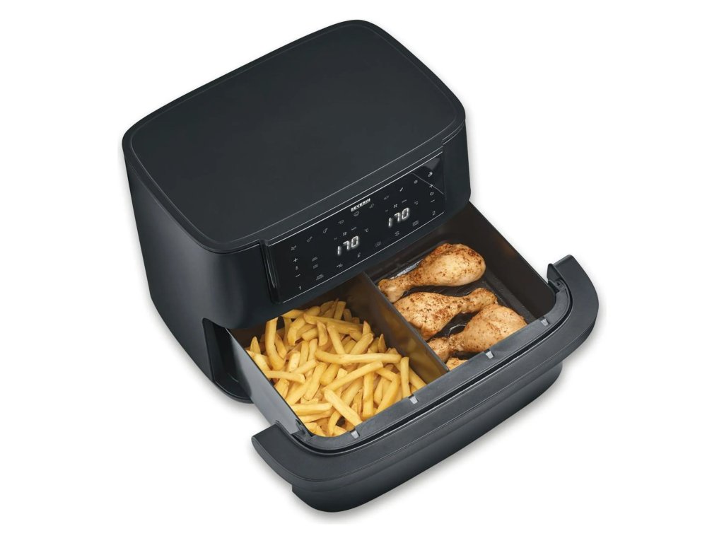 If you've ever tried to do two things at once and ended up with one being done and the other looking like it needed some life coaching, you'll like air fryer FR 2490. You see two settings side by side on the display, and it looks like someone has done the thinking for you. You just set the temperature, time and pretend that multitasking is your nature.