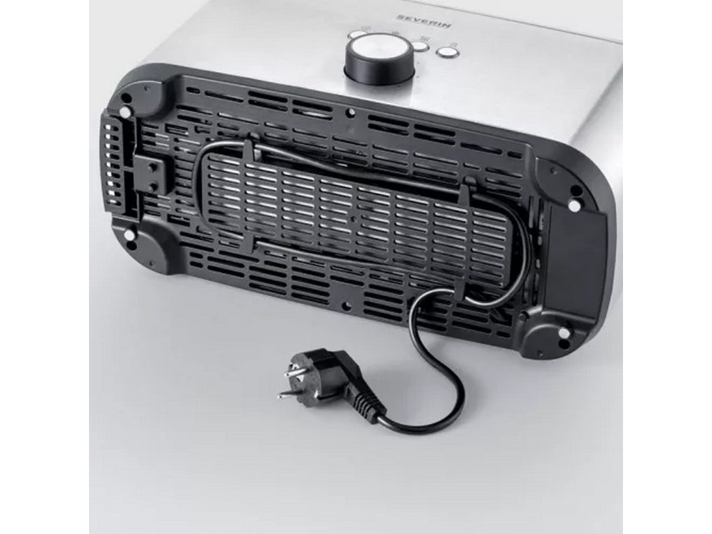 The Severin AT 2512 toaster oven with 1400 W and 4 large slots with integrated toasting attachment offers 7 variable toasting levels, an automatic toast centering function and an integrated bagel function for single-sided toasting.