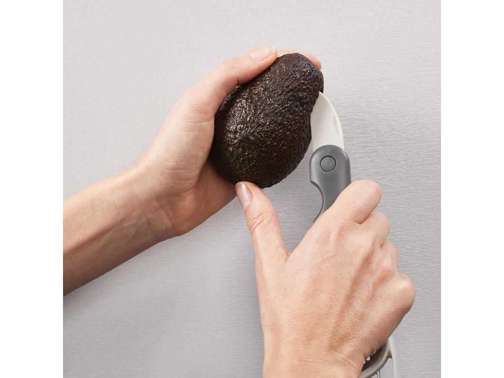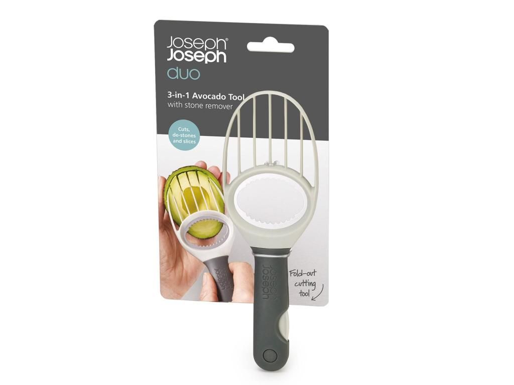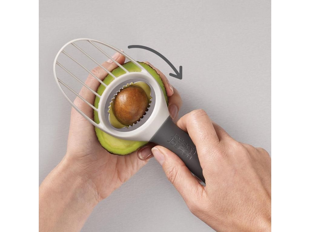 - The practical Joseph Joseph DUO avocado slicer allows you to comfortably and safely peel, pit, slice, and scoop avocado with a single compact tool.