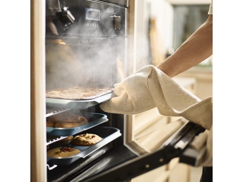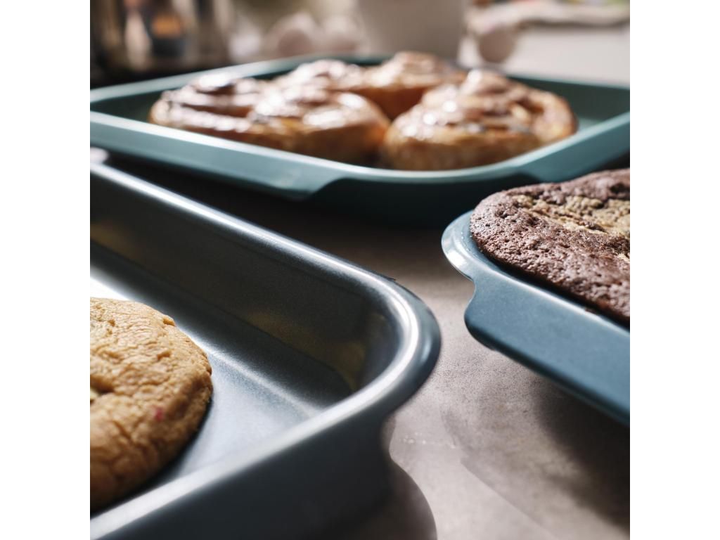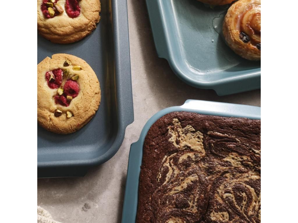 - The set of three NEST BAKE baking sheets in blue offers a practical solution for everyday baking and preparing larger family portions.