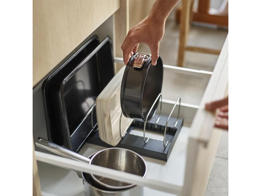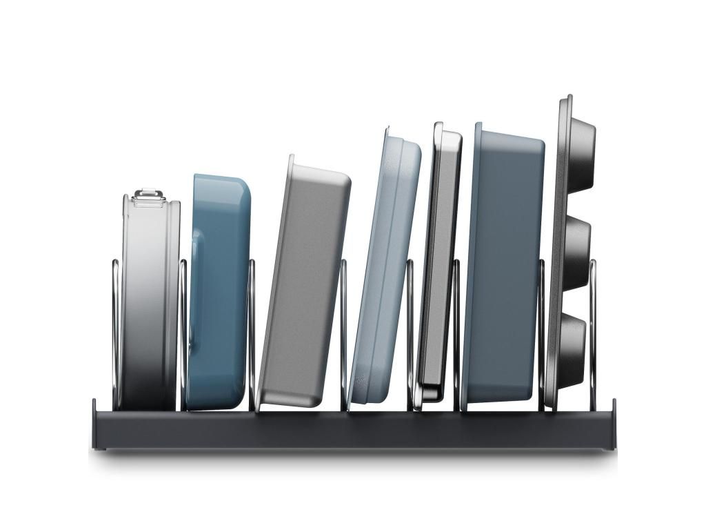 - A practical solution for any kitchen that wants to keep baking sheets, roasting pans, and cake tins neatly stored at all times.