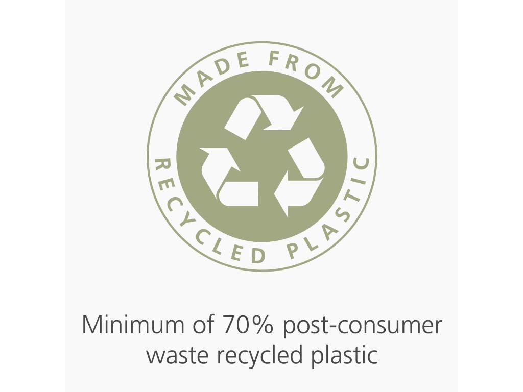 - The bag material is made from up to 70% recycled plastic from post-consumer waste, helping to reduce the consumption of new plastic raw materials.