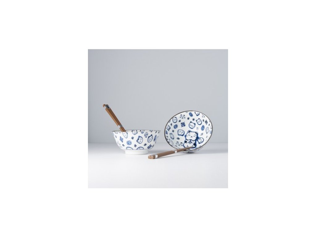 Bowls in a set with chopsticks MANEKI CAT BLUE MIJ 400 ml 2 pcs