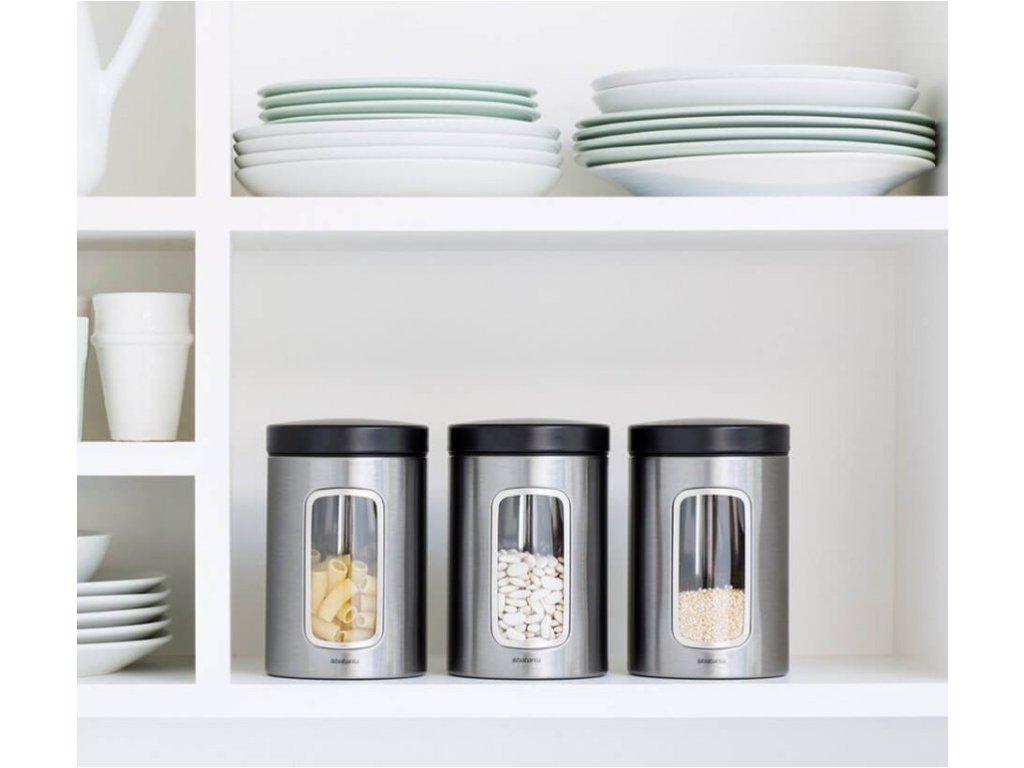 Kitchen storage jar WINDOW CANISTER 1,4 l, fingerprint proof, matt steel, Brabantia