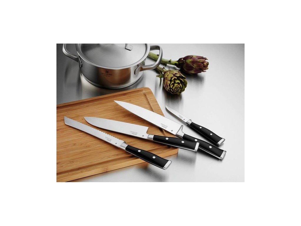 The Grand Class knives combine the tradition of WMF's premium forged knives with riveted handles and contemporary design. The knife blades are made of special high quality knife steel. They are manufactured using the latest Performance Cut manufacturing technology. This results in very sharp knives, resistant to damage or breakage, which also retain their sharpness for an incredibly long time. The service life of the knives is even twice as long as the standards require.