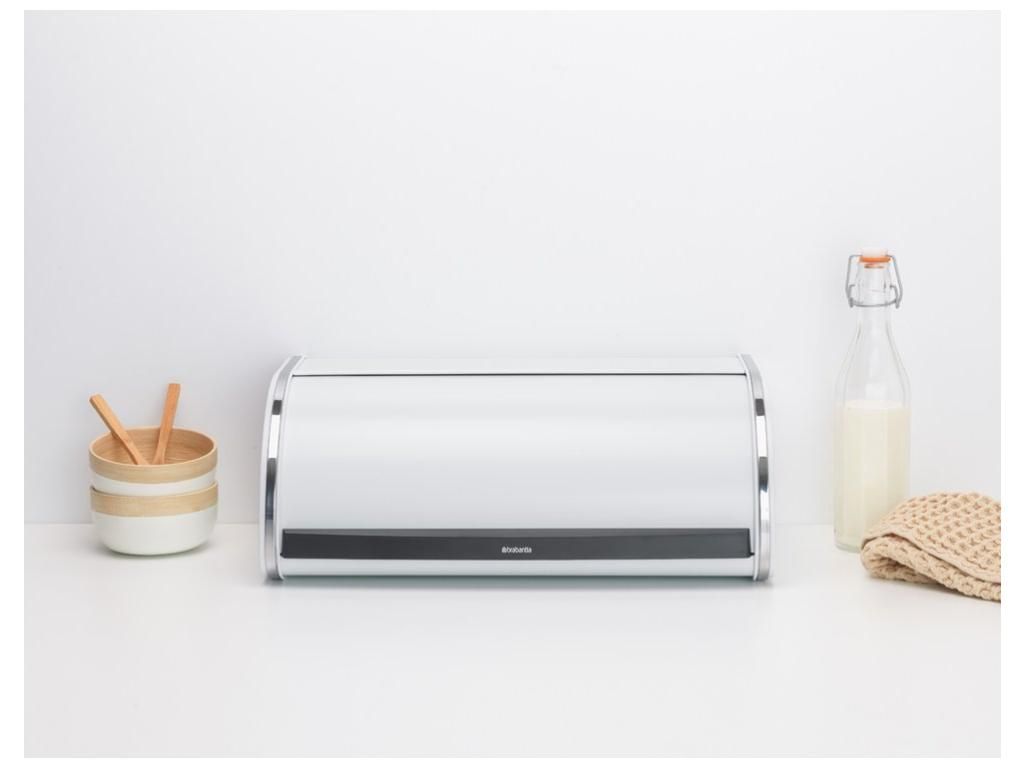 Looking for a space-saving solution to keep your bread fresh or crispy? Meet the Roll Top bread box from the companyBrabantia . It fits up to two loaves, but due to its design it doesn't need much space. Bread bin Roll Top has a partially flat top, which allows for the placement of additional cans.