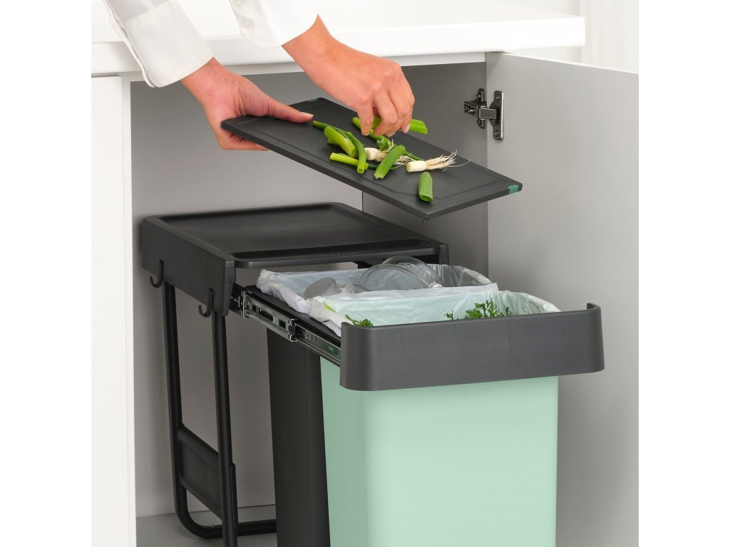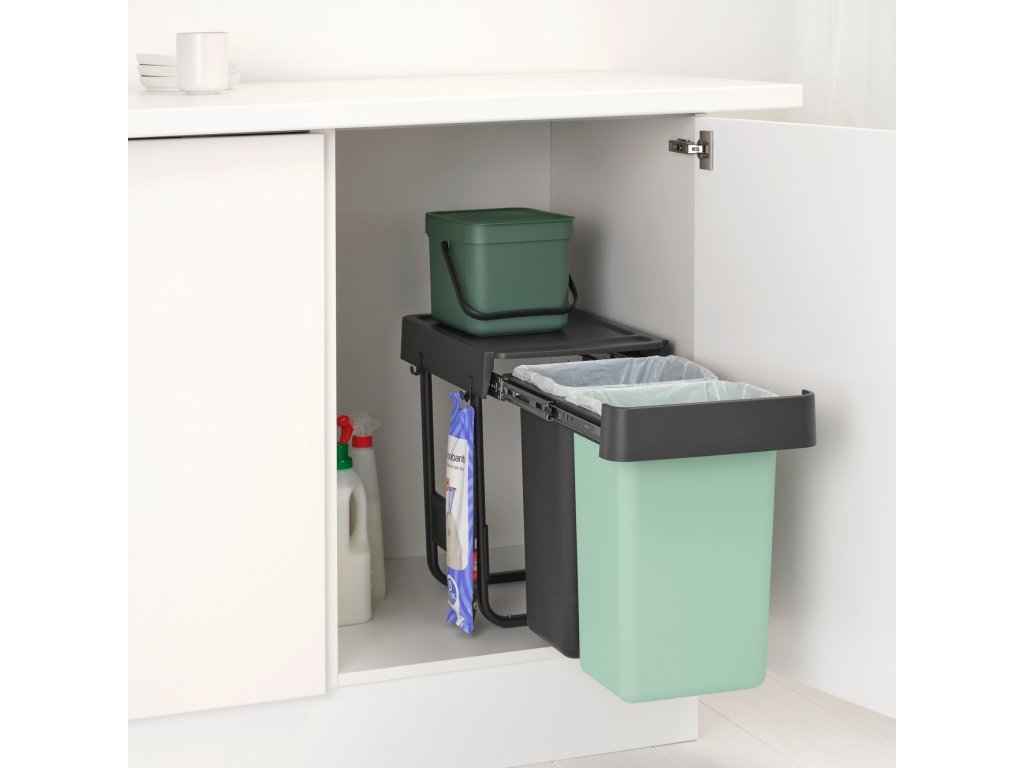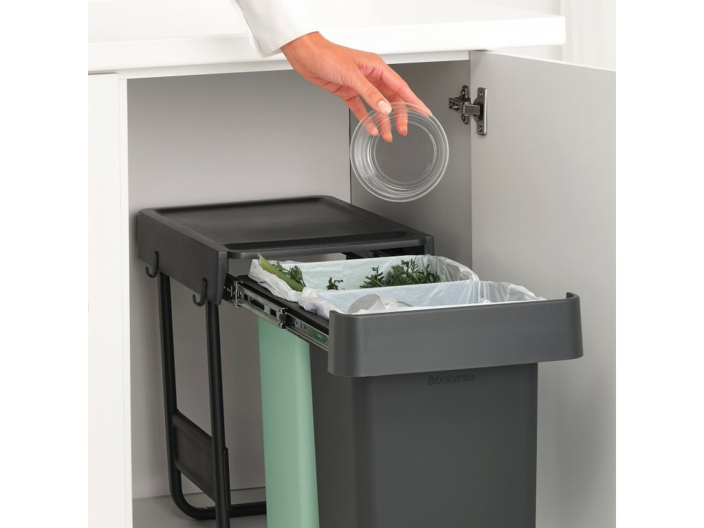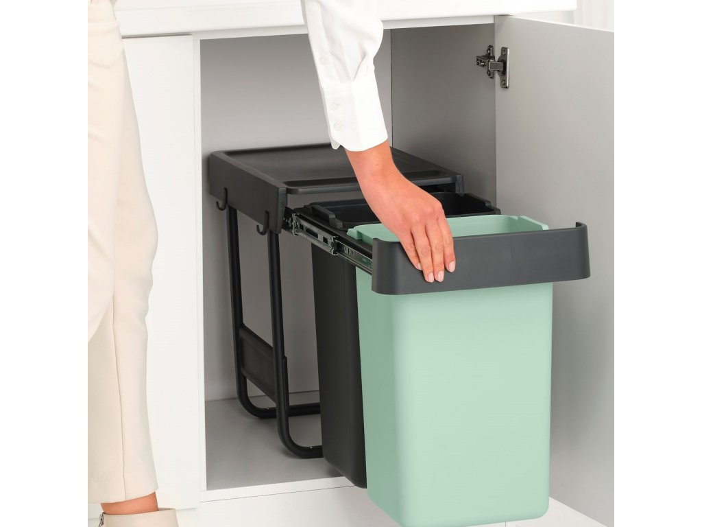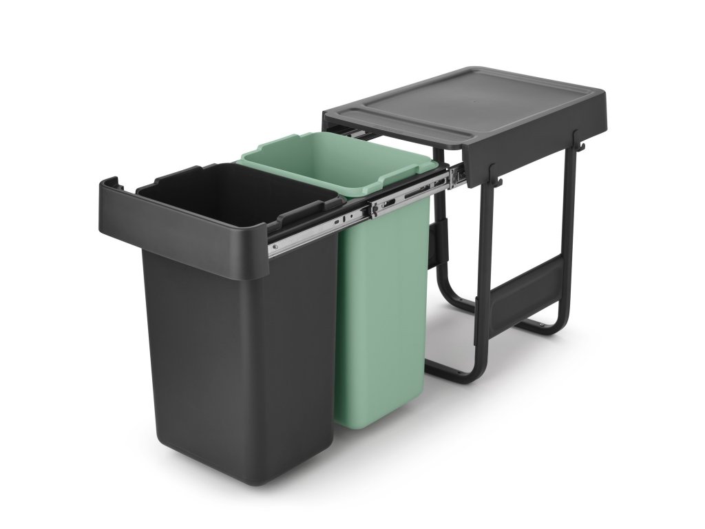 Built-in waste bin SORT & GO 2x 15 l, dark grey / jade green, plast, Brabantia