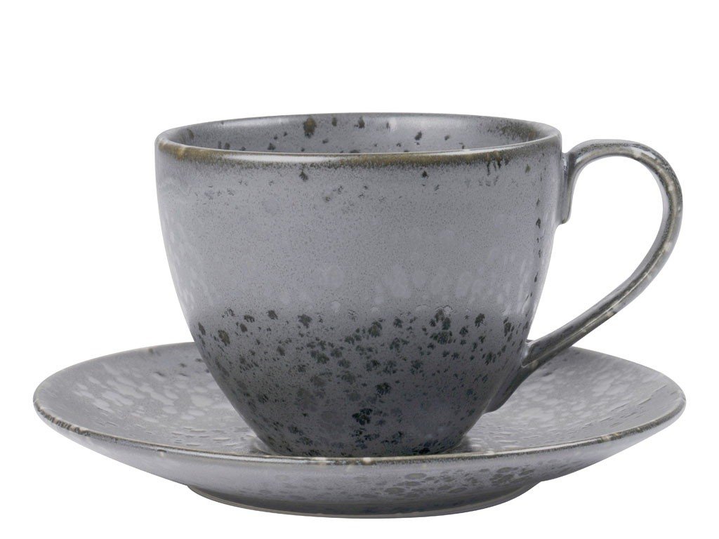 Cappuccino cup with saucer is made of black stoneware with reactive glaze. Enjoy your cappuccino, café au lait and your other favourite coffee elegantly from a cup and saucer with Bitz. Height 6,3 cm.