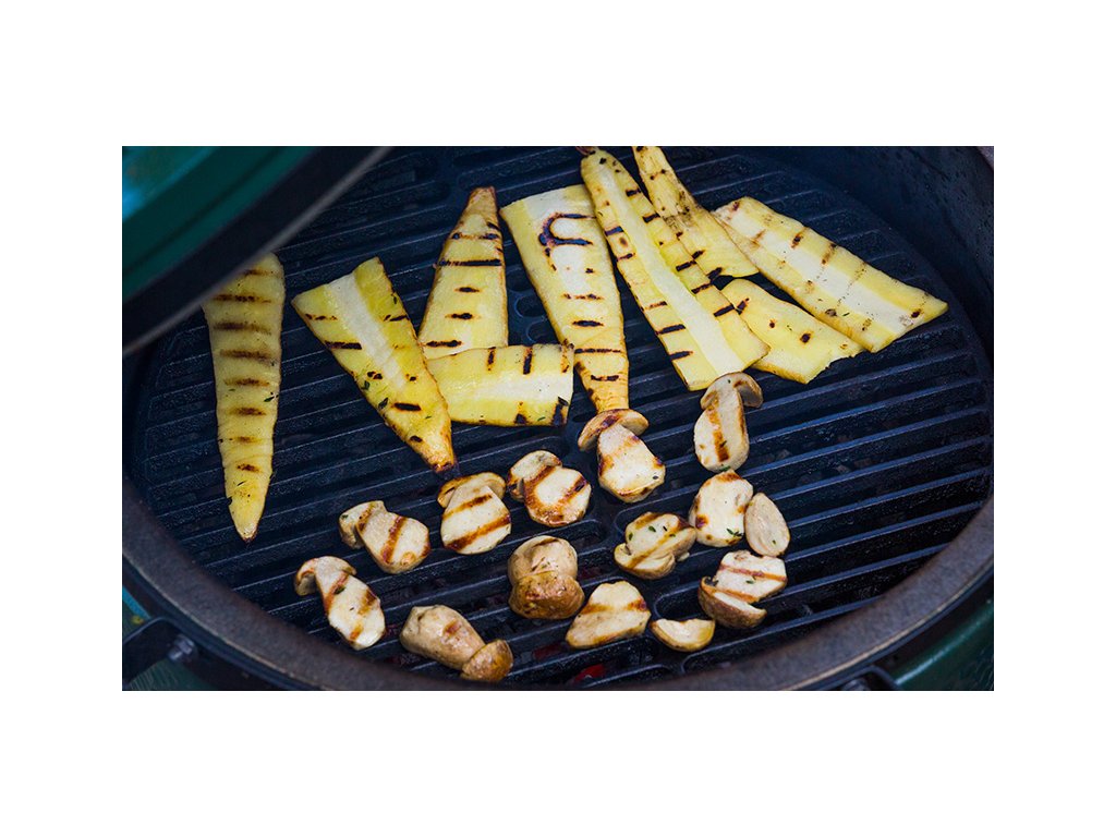 Are you going to grill on your Big Green Egg? Then the cast iron grate is indispensable for you ! The only way to achieve a beautiful grilling pattern is to use a cast iron grill grate. Not only does the food look great, but it gets a lot more aroma, colour and flavour during preparation. Cast iron absorbs heat more easily and quickly, retains it longer and releases it evenly into the food being prepared. In addition, it is a durable material that will last a lifetime and is very easy to maintain.