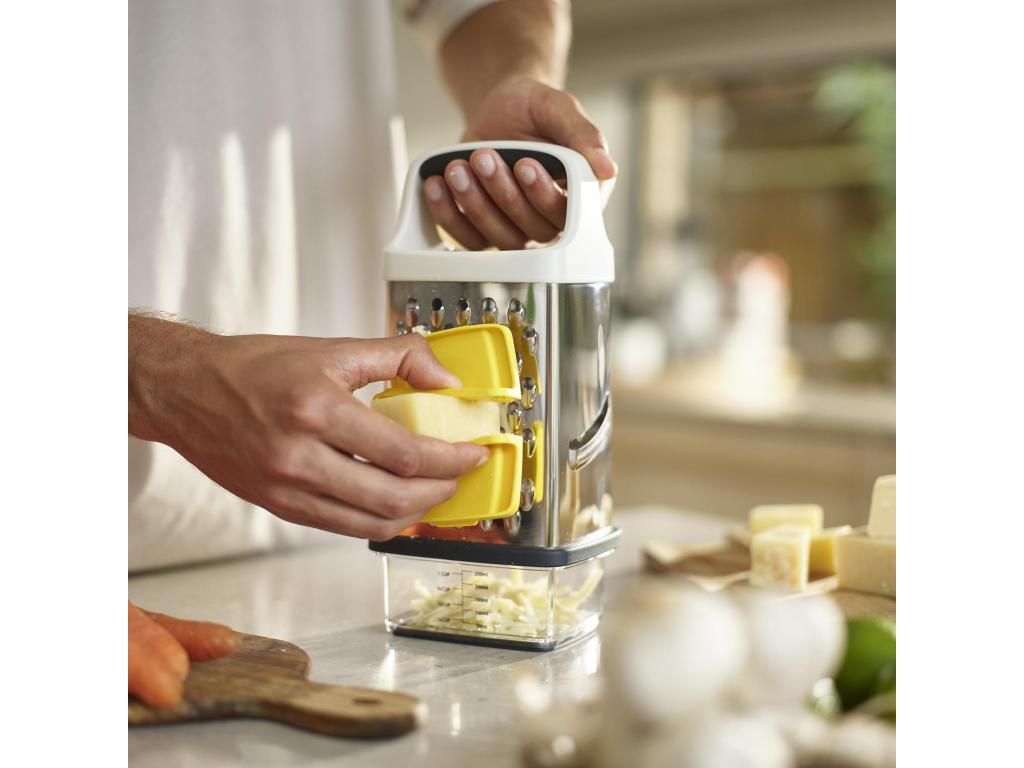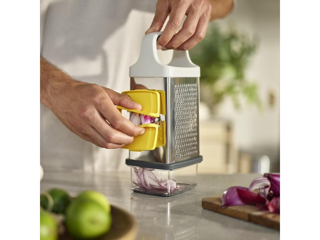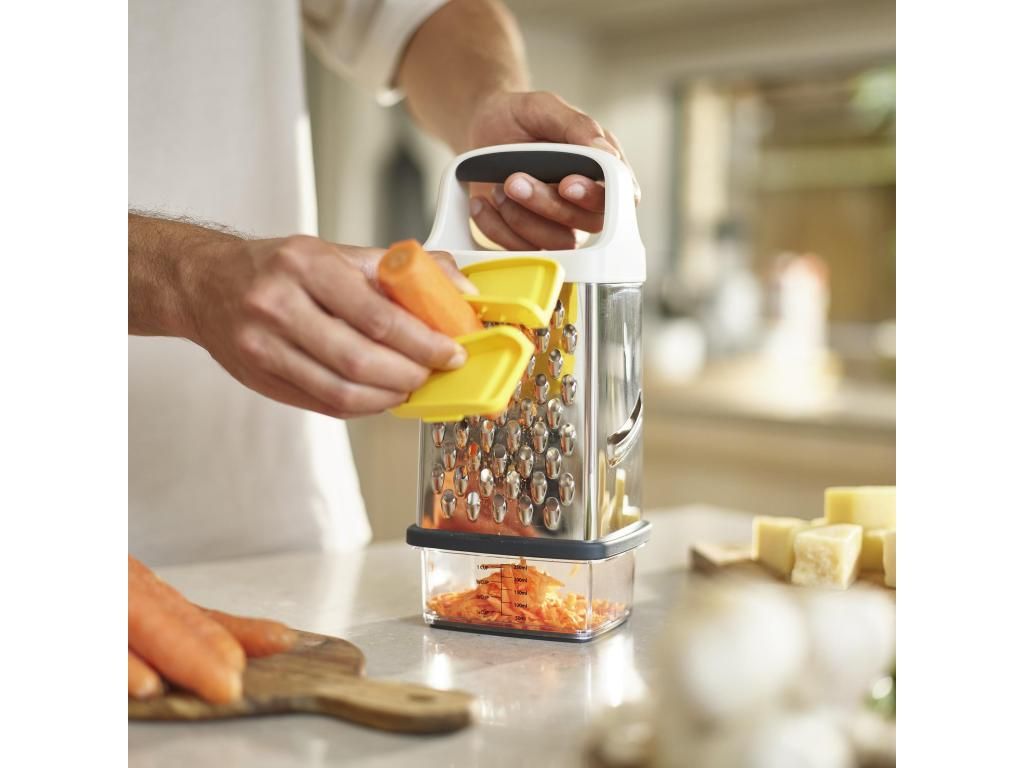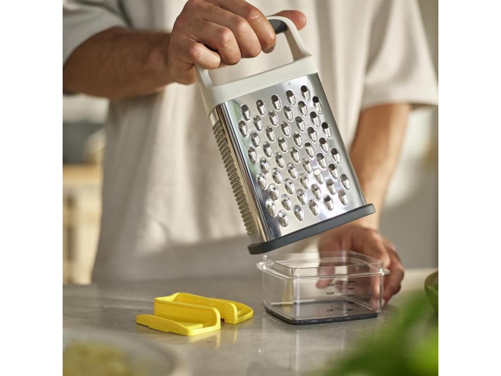 - Box grater Joseph Joseph MULTI-GRIP is a well-thought-out kitchen assistant that makes slicing and grating ingredients easier and at the same time increases safety at work.