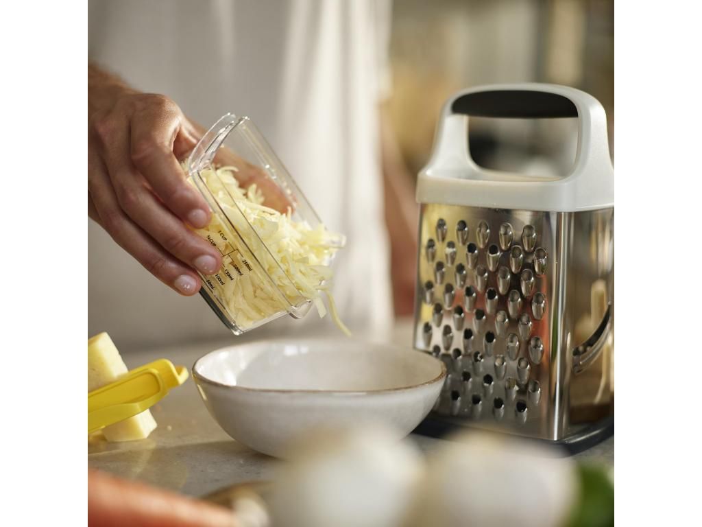 - After use, the collection container can be stored directly in the grater body, saving storage space.