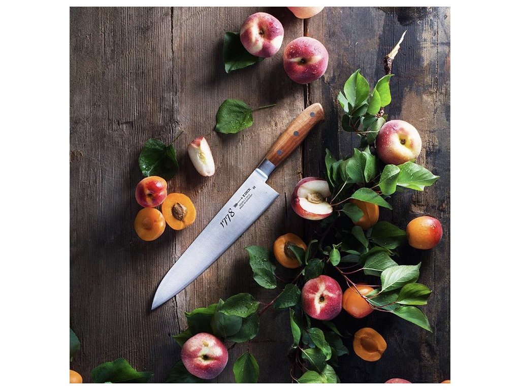 The heart of every professional kitchen is a chef's knife with a stable blade. It is the most important kitchen utensil for every occasion: cutting vegetables, meat or fish. The handle of the chef's knife is made of plum wood. This knife is packaged in a gift set as standard.