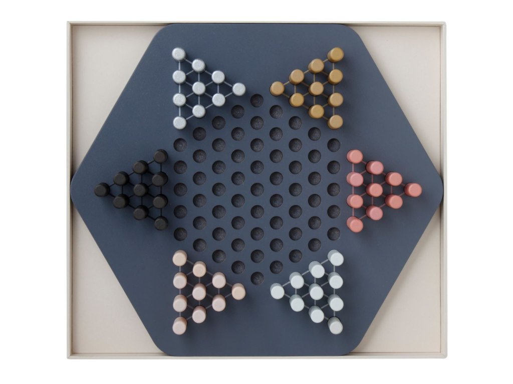 - includes a wooden board, lacquered wooden pieces and instructions in English, French and German