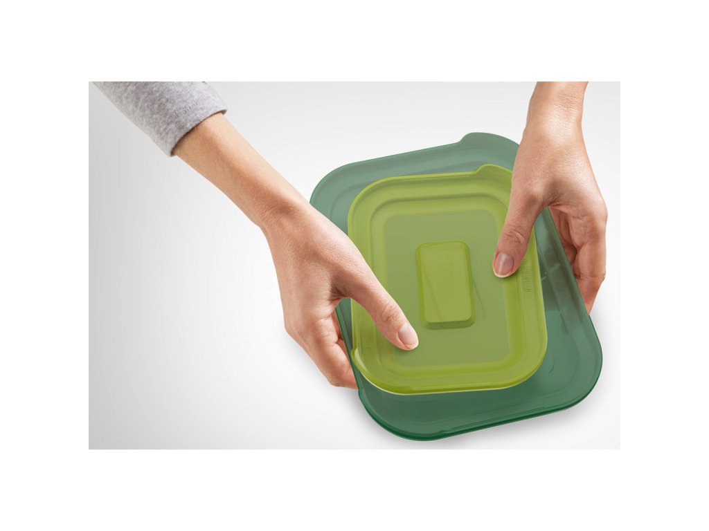 Tidy kitchen and every bit of free space is priceless. Efficient food storage for future use is almost a daily occurrence in every household. Often, storage containers get "irretrievably" separated during kitchen processes and we spend time looking for the right lid. The innovative approach of the designers to stack not only the containers but also the lids is ingenious. The new glass containers are not only ideal for hygienic storage. Borosilicate durable glass is made for baking in the oven, storing in the freezer and heating in the microwave. The smallest size can be used for dressing or herbs and the largest bowl can be used to roast meat for a family lunch.