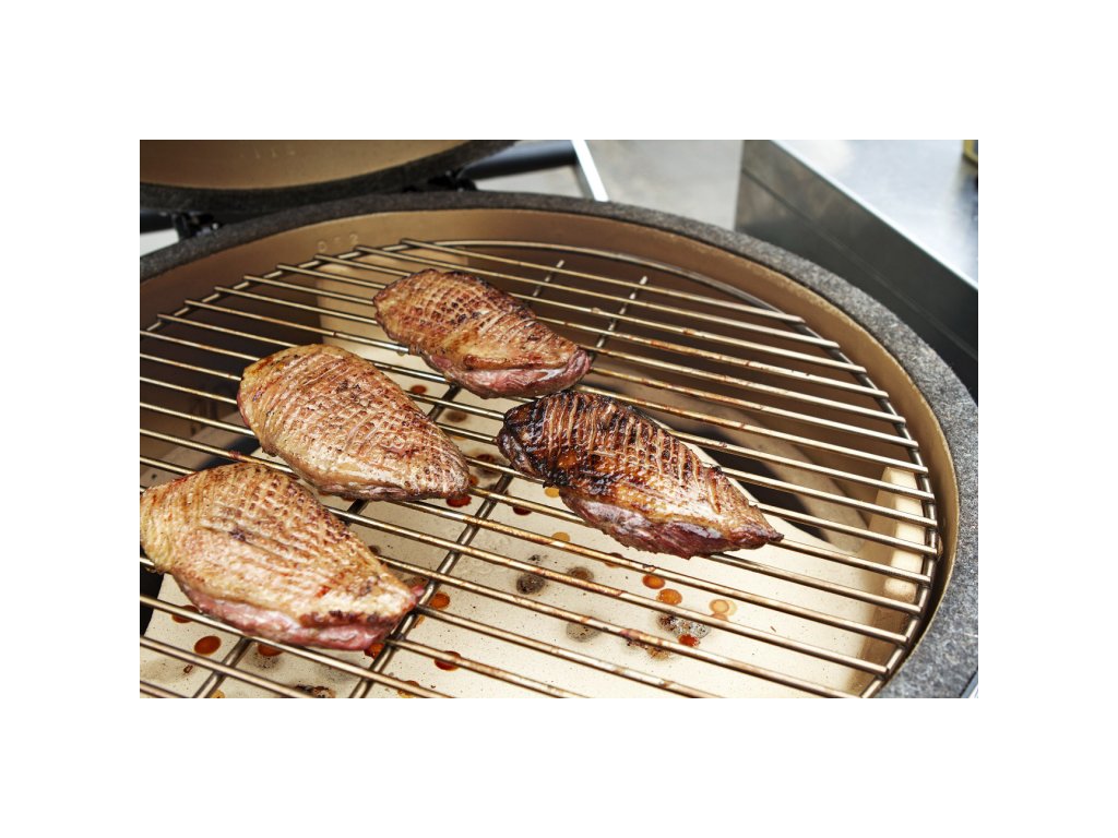 The ceramic ConvEGGtor® creates a natural barrier between the ingredients and the open flame in the grill. The indirect heat transmitted by the ceramic heat shield turns the EGG into an outdoor oven. It is a great helper for slow cooking at low temperatures or for baking bread or pizza.