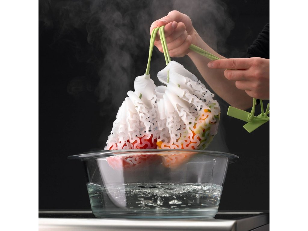 - A clever silicone strainer that allows you to cook different ingredients in the same pot, but separately - each for exactly as long as it needs.