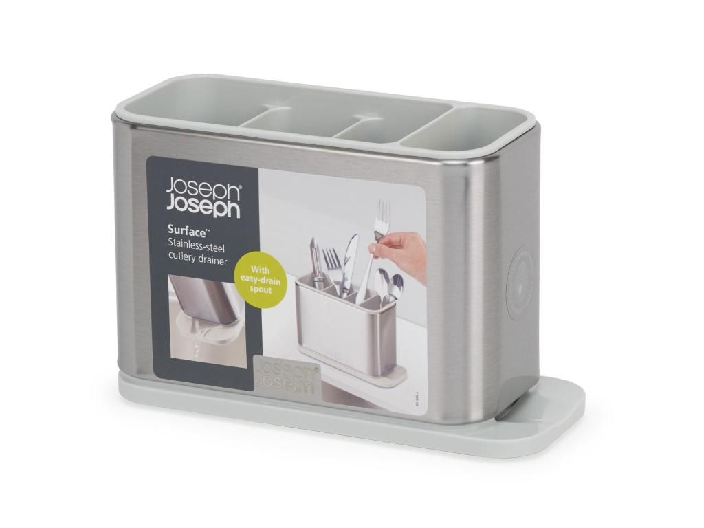 - The Cutlery drainer Joseph Joseph SURFACE helps keep the worktop by the sink tidy and allows for convenient drying of cutlery after washing.