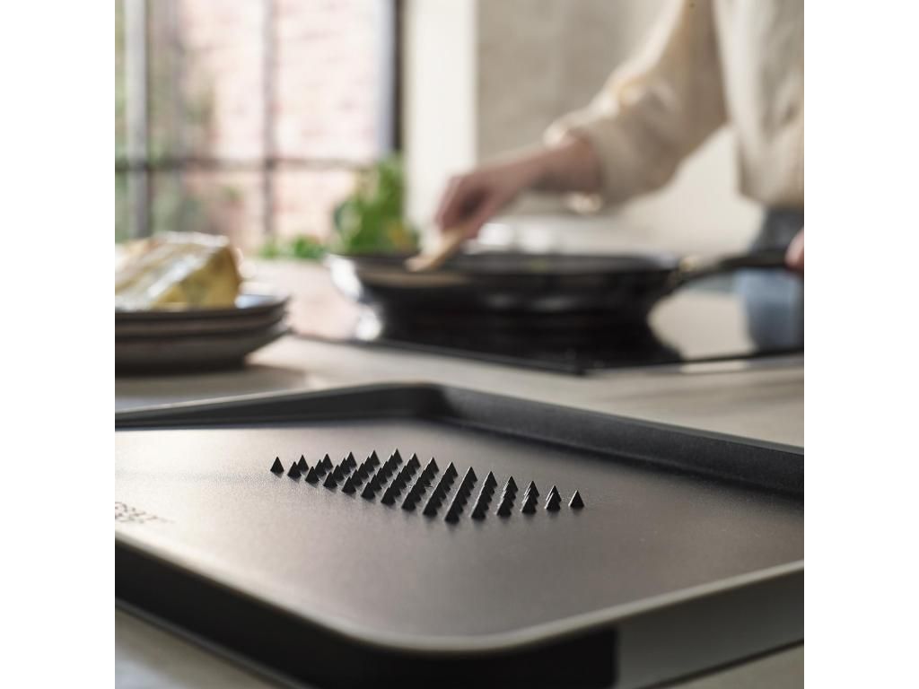 - One side is equipped with pyramidal non-slip protrusions that firmly hold meat during portioning and facilitate precise cutting.