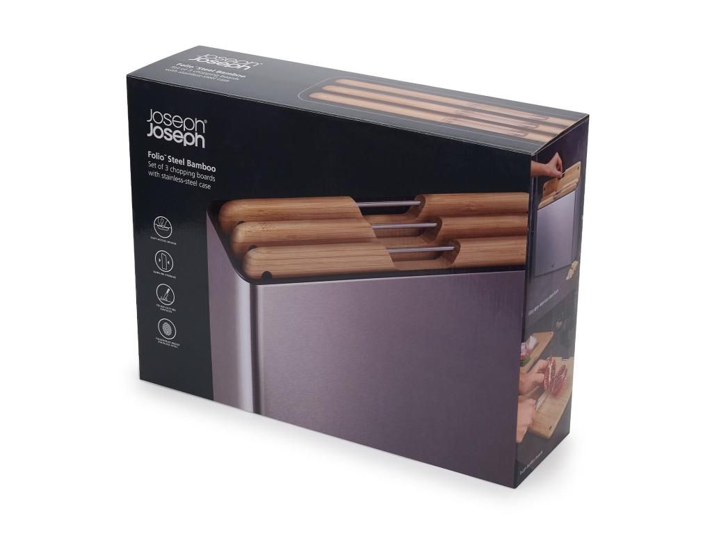Cutting board FOLIO 60229 34 x 24 cm, set of 3 pcs, bamboo / stainless steel, Joseph Joseph