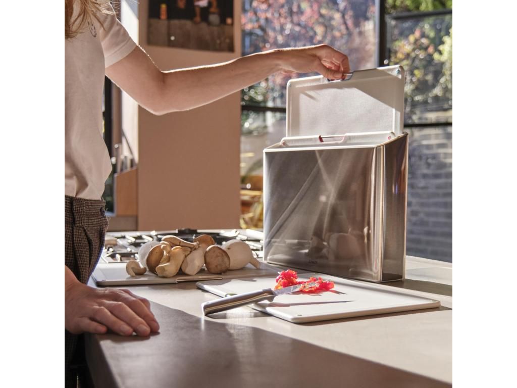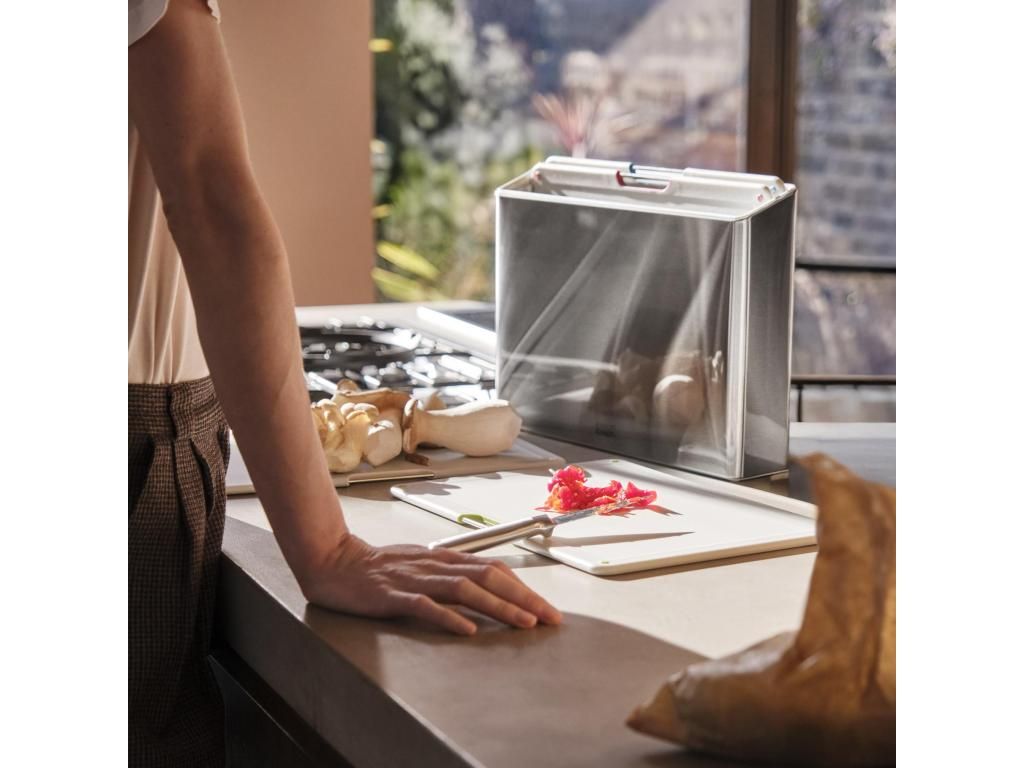 Cooking often starts quite innocently. Cooking often starts quite innocently. You take one cutting board, chop some vegetables, and tell yourself it will actually go quickly. A few minutes later, you're already dealing with where to put the meat, where that clean cutting board was, and why the kitchen counter is suddenly full of things. However, a clear set of cutting boards in the FOLIO STEEL stand will shorten this scenario to a minimum.