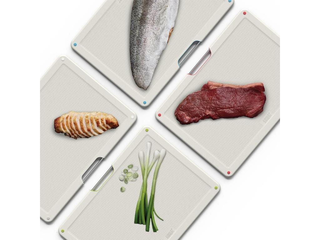 - The color coding of the boards helps to limit cross-contamination between different types of food, for example, between raw meat, fish, vegetables, or ready meals.