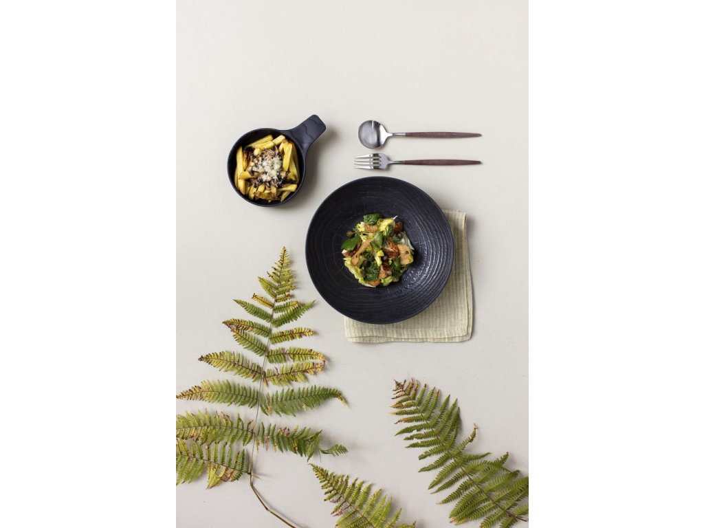 Ceramic soup bowl with wood effect is inspired by nature. This modern plate from the Arborescence collection is made in France and is hand finished. This Arborescence bowl can be combined with the flat plate, which mixes the simple and natural colours of the collection: ivory, pepper and liquorice.