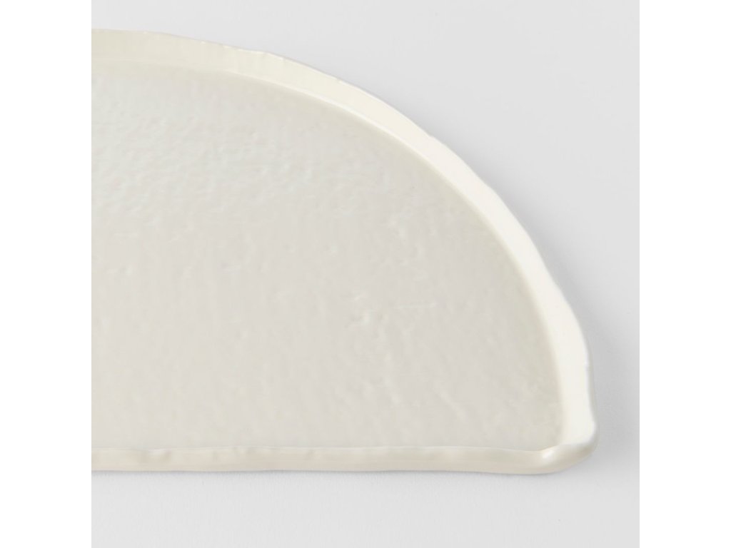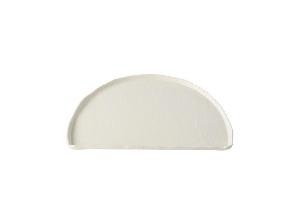 - The semicircular plate HALF MOON, 27 cm wide, brings a modern and creative way of serving with an emphasis on clean shape and minimalist design.