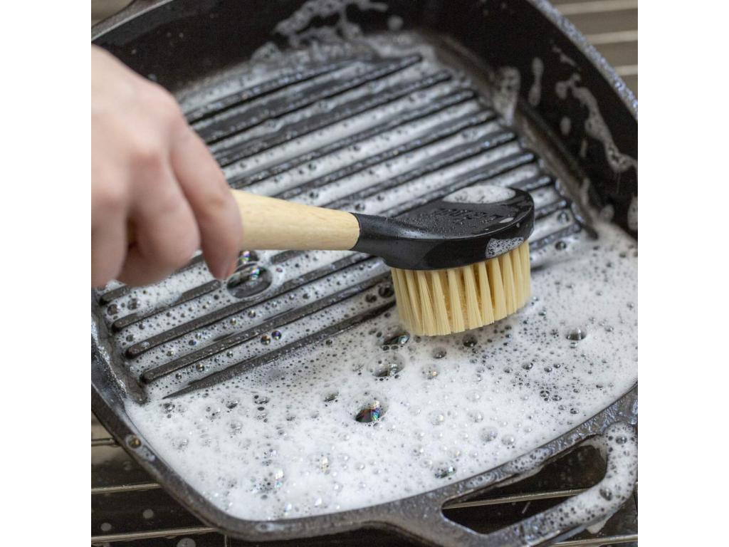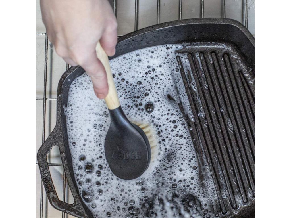 - Dish brush Lodge is an ideal helper for everyday cleaning of steel and cast iron cookware - both enameled and fired without chemical treatments.