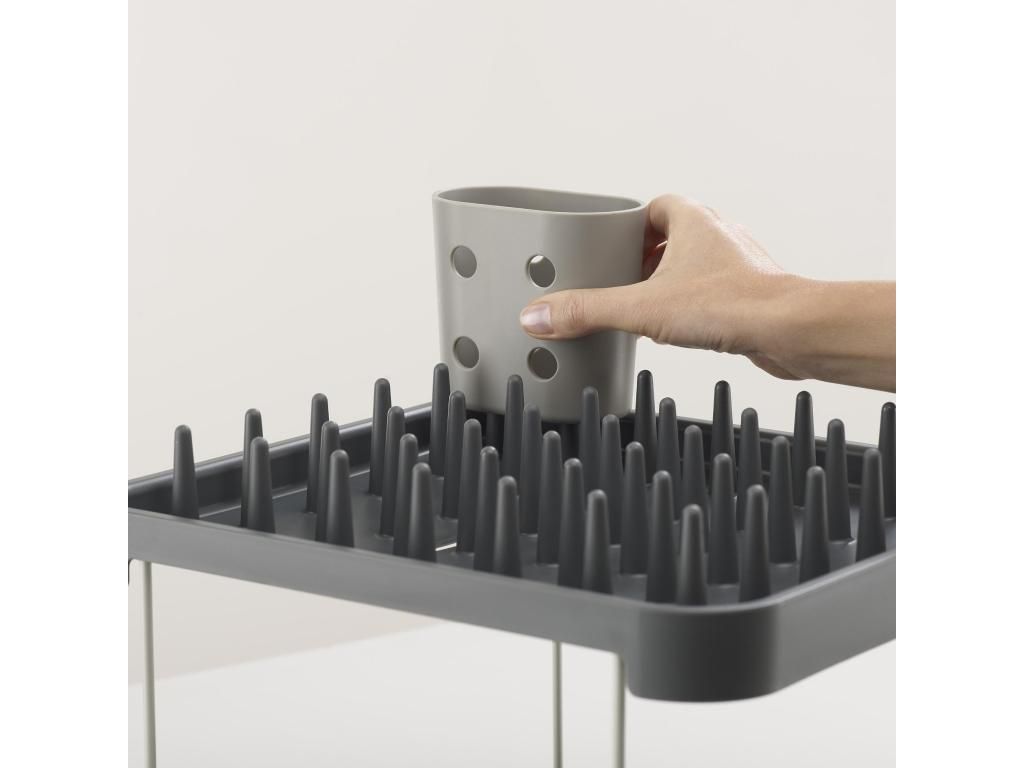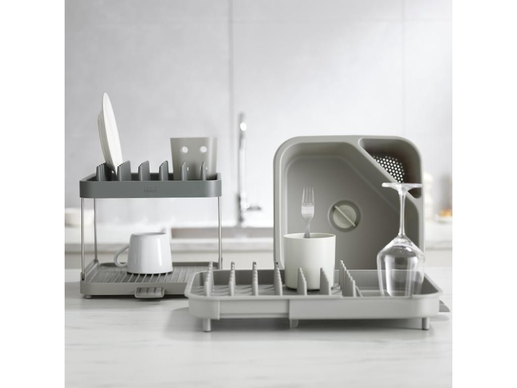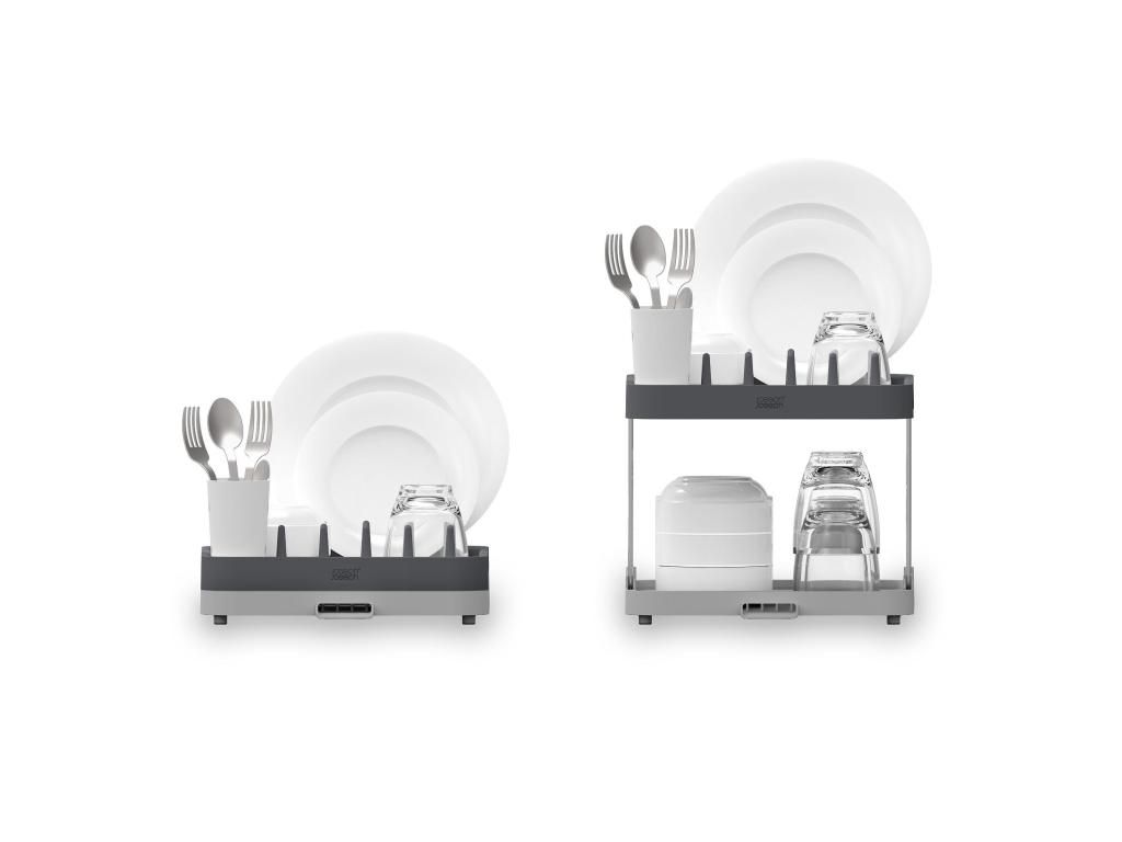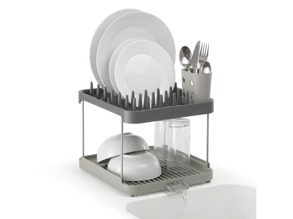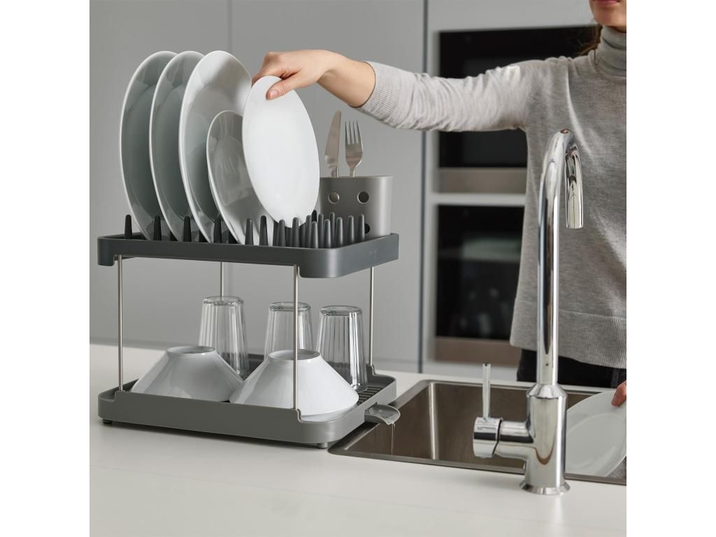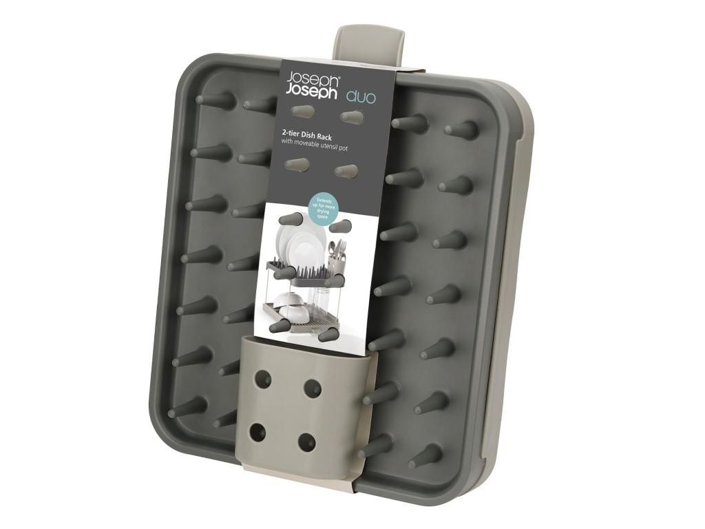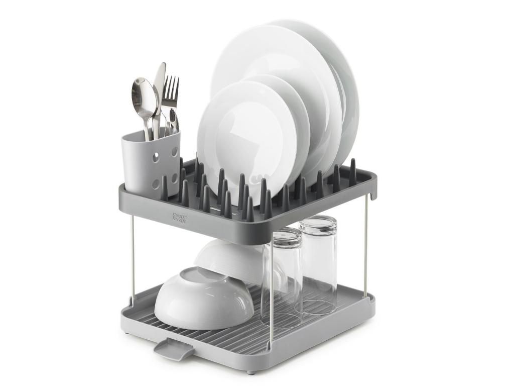- The Joseph Joseph DUO two-tier dish rack offers a practical solution for drying dishes on a smaller work surface thanks to its clever use of height.