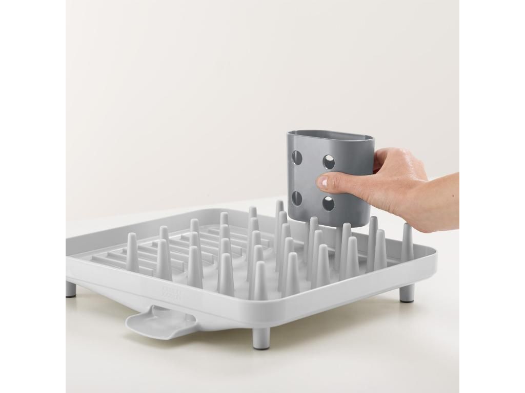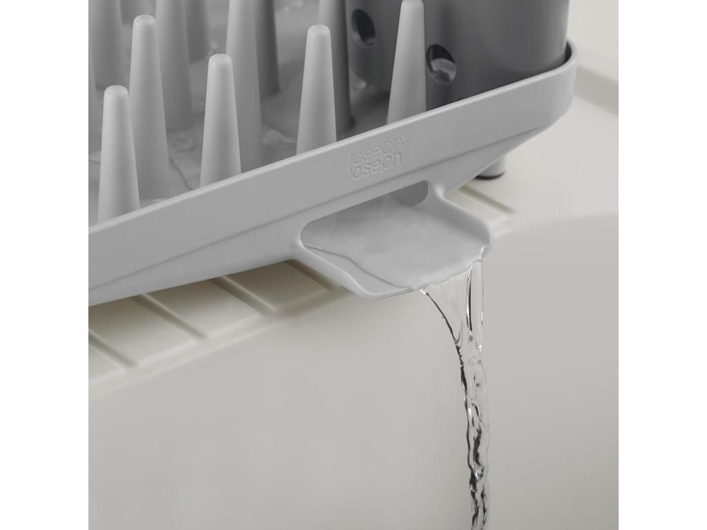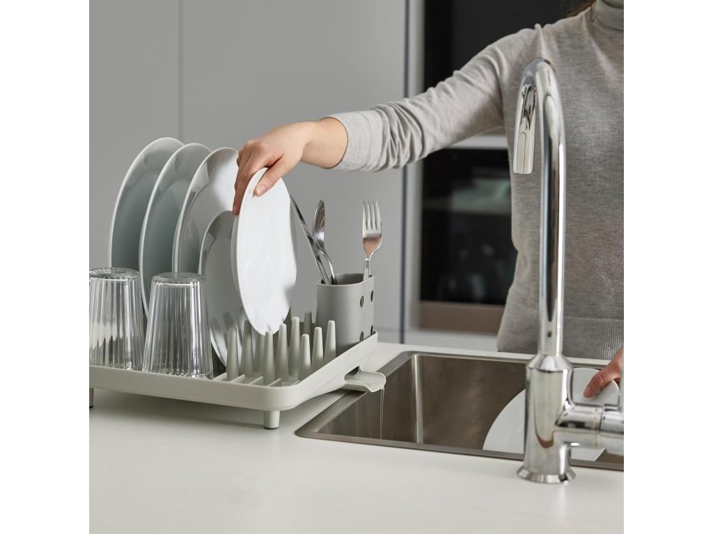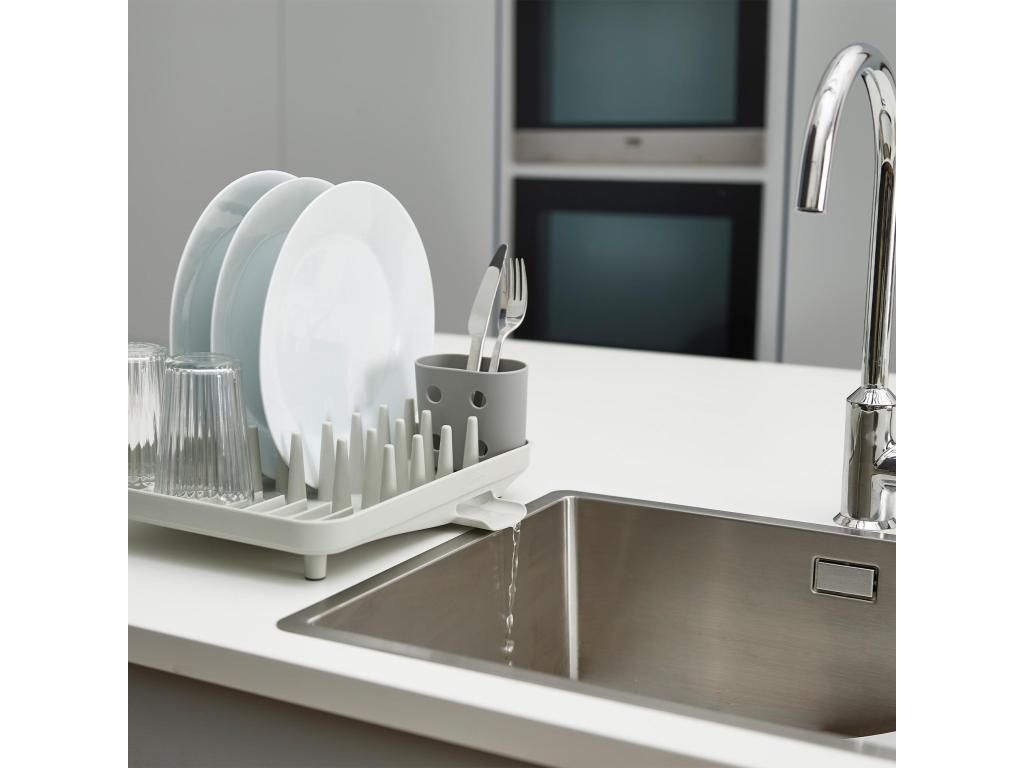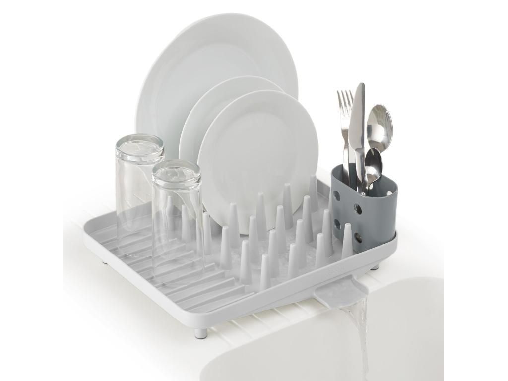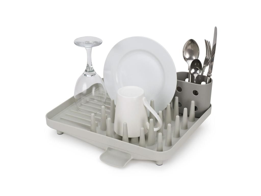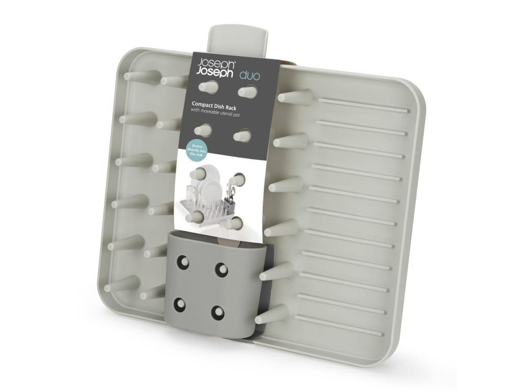 - The compact Joseph Joseph DUO draining rack is a practical solution for everyday dish drying in smaller kitchens or where counter space needs to be saved.