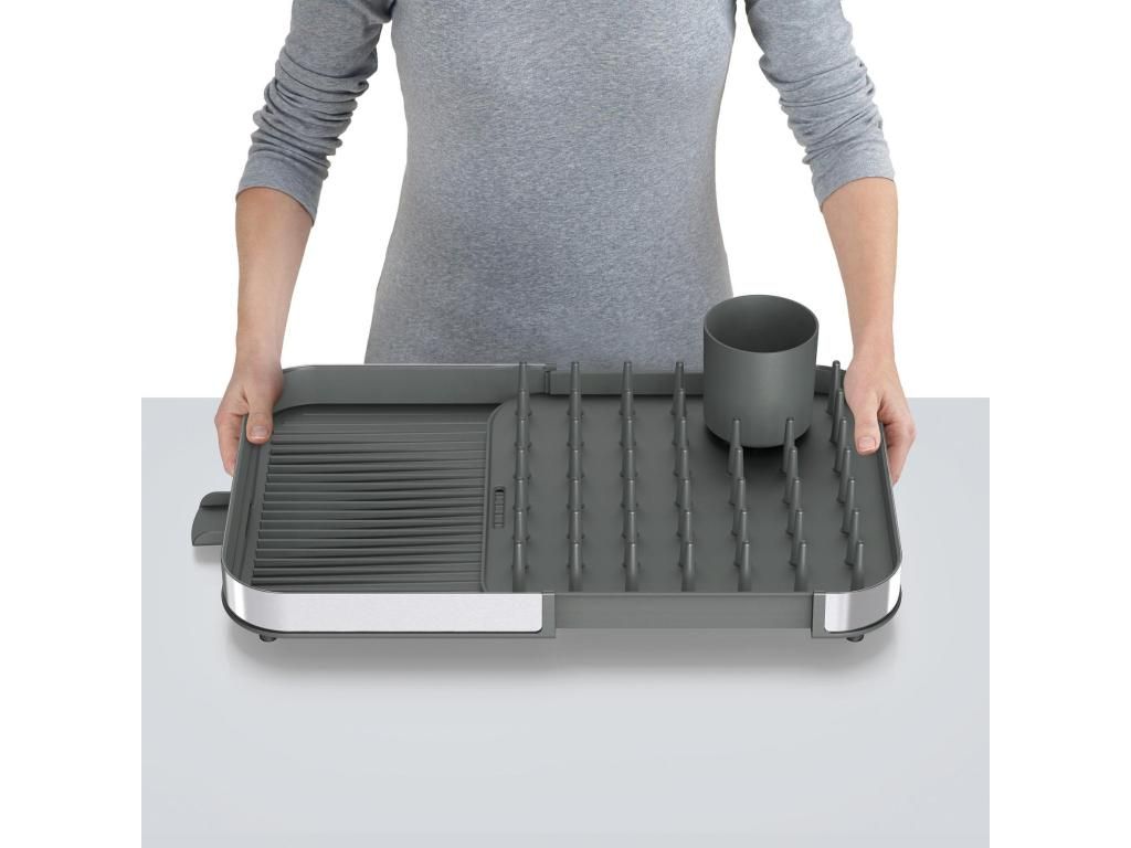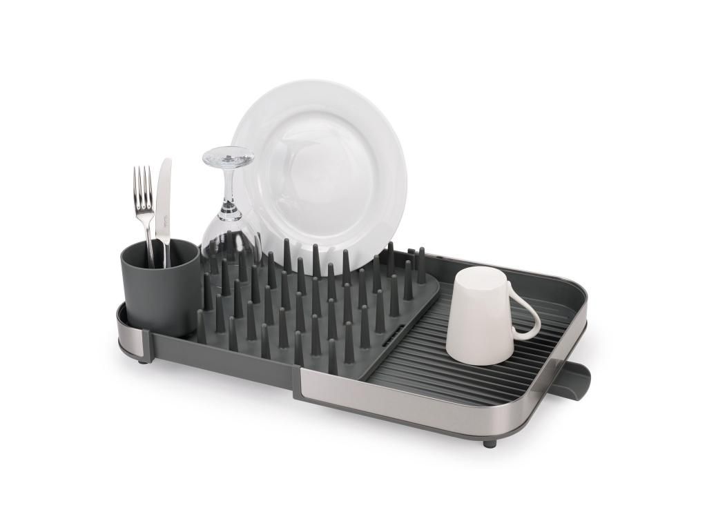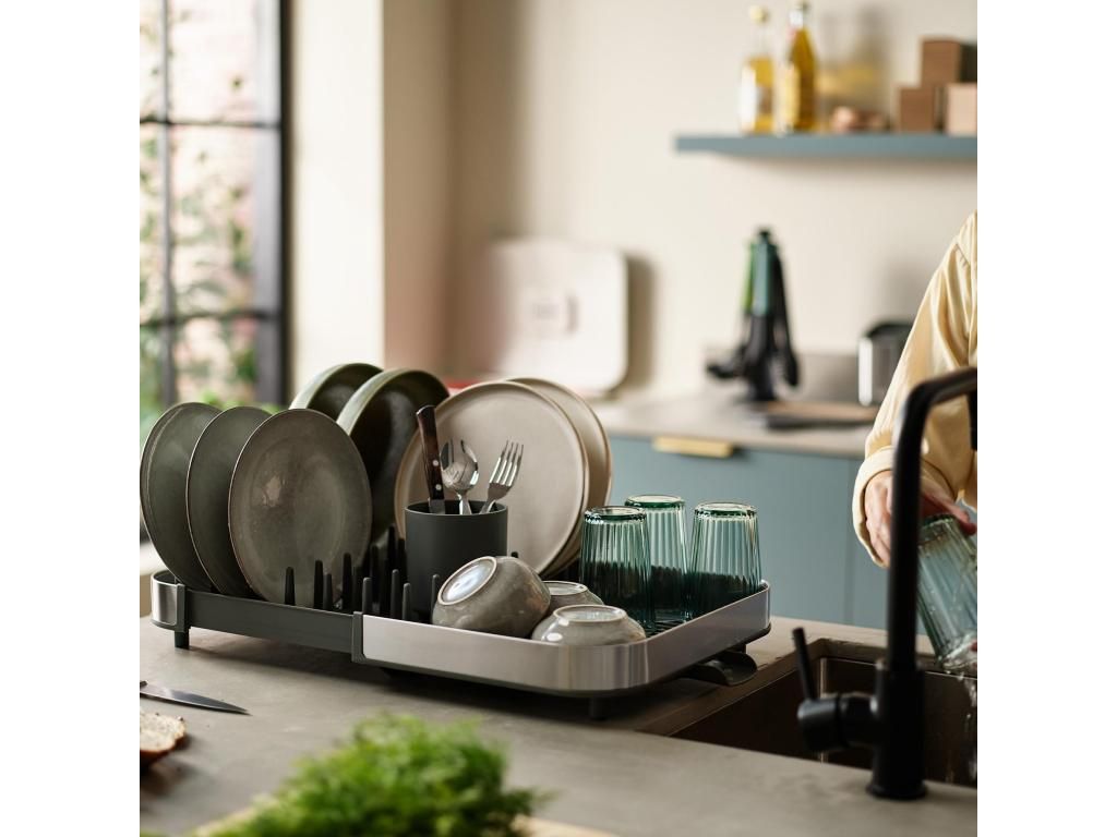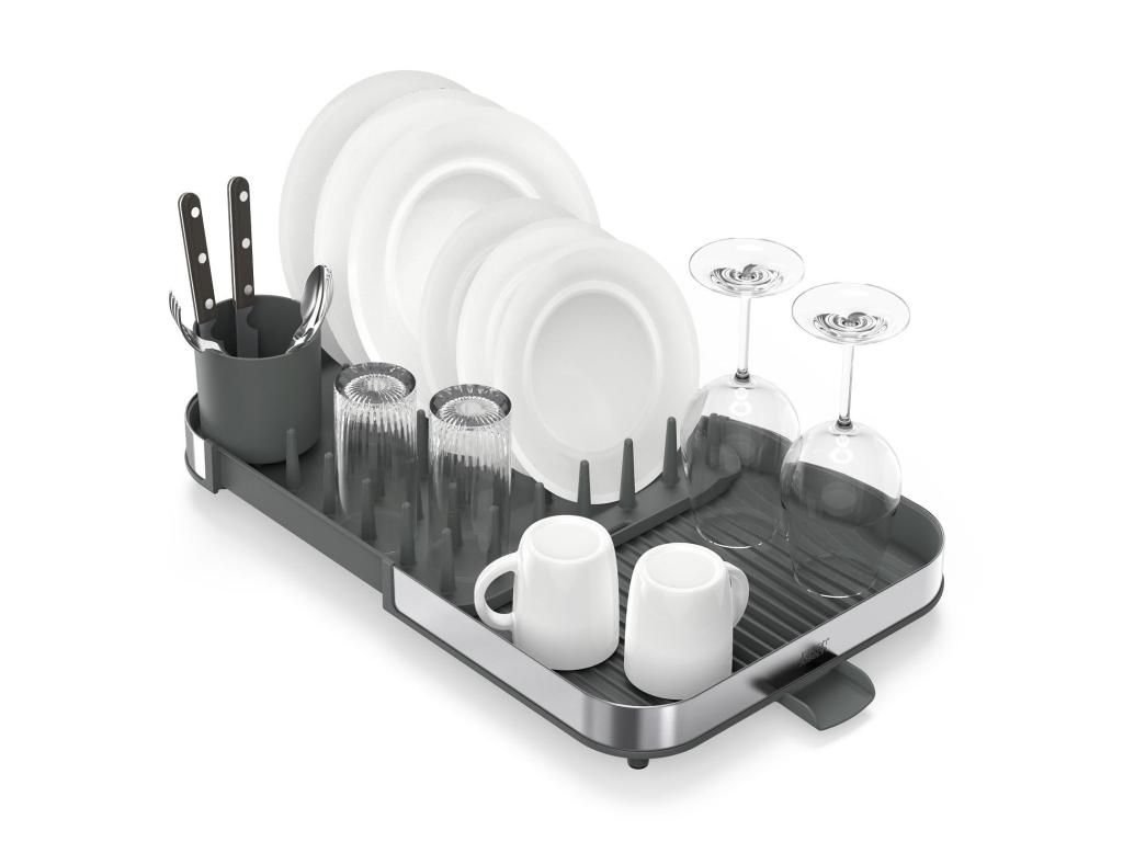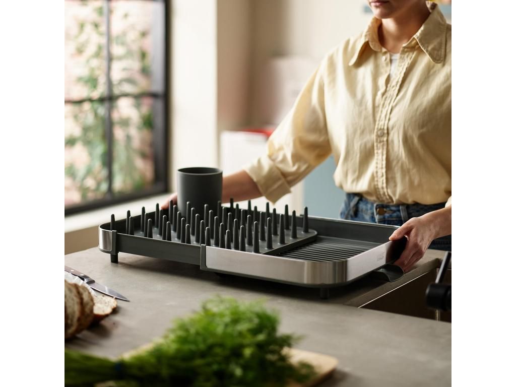 - The expandable Joseph Joseph DUO dish rack is a practical helper for everyday dish drying and allows convenient space adjustment according to your kitchen's current needs.