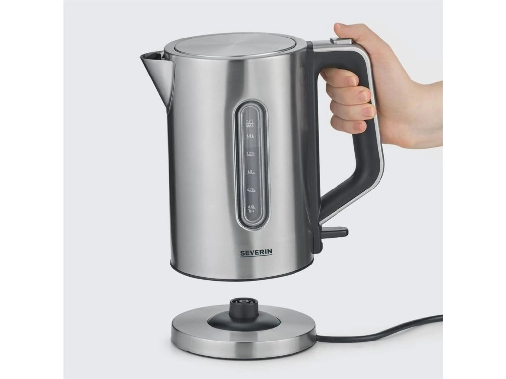 - Electric kettle Severin made of brushed stainless steel is a reliable helper for quick and convenient preparation of hot drinks at home and in the office.