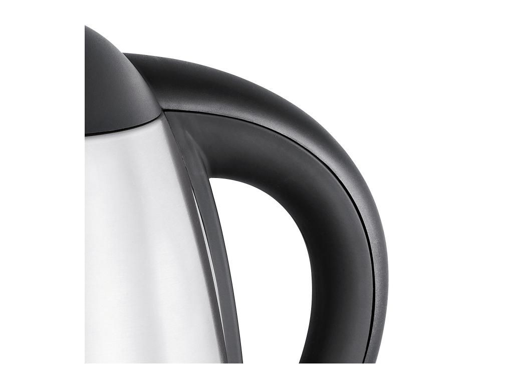 The kettle rotates 360° at the base. The limescale filter can be removed and washed. The excess cable length is stored in the base of the kettle. It has protection against running dry, against overheating and automatically switches off when the boiling point is reached. The water level indicator under the handle is illuminated. The heating coil is hidden and made of stainless steel.