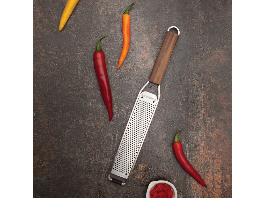 Extremely beautiful, extremely pleasant to the touch oiled walnut handles that add a warm touch to any style of kitchen equipment are one of the main advantages of the new range of stylish Master graters from the American brand Microplane®. In addition to their unique design, the several types of graters boast superior functionality that you will enjoy for years thanks to the quality of the materials used. A definite choice for "craftsmen" who like to create perfect works of art in the kitchen.