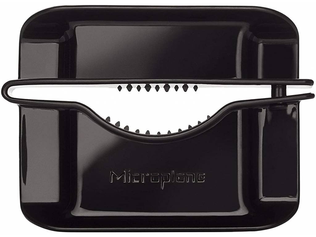For greater safety when working with the world's sharpest graters, for your grating and slicing pleasure. The plastic attachment simply holds the grated fruit, vegetables or cheese so you can process every last scrap without fear of injury from the grater blade.