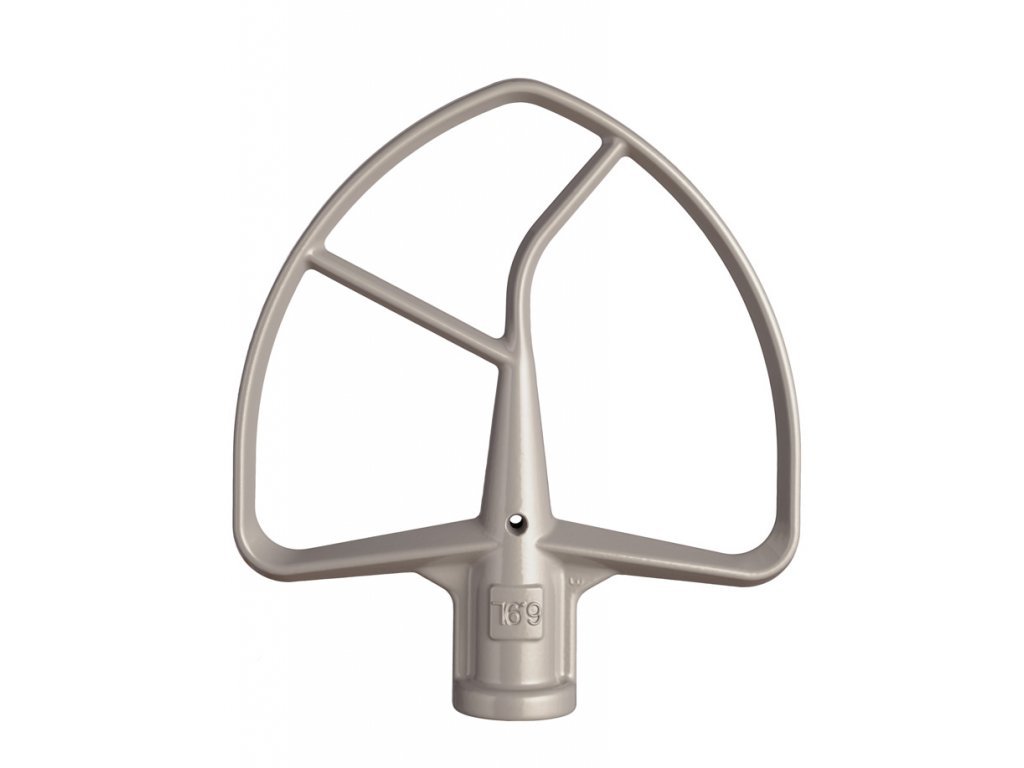 The KA5K7FB KitchenAid Flat beater is a standard accessory for the Heavy Duty Kitchen Aid Food Processor with 6.9L Bowl 5KSM7591X. It is used for the preparation of cake and puff pastry, cakes, frostings or mashed potatoes. It is made of aluminium with a non-stick nylon surface. Dishwasher safe.