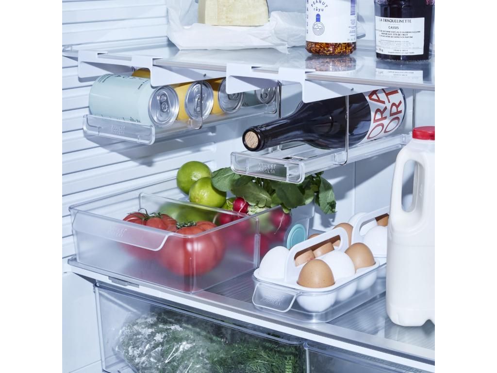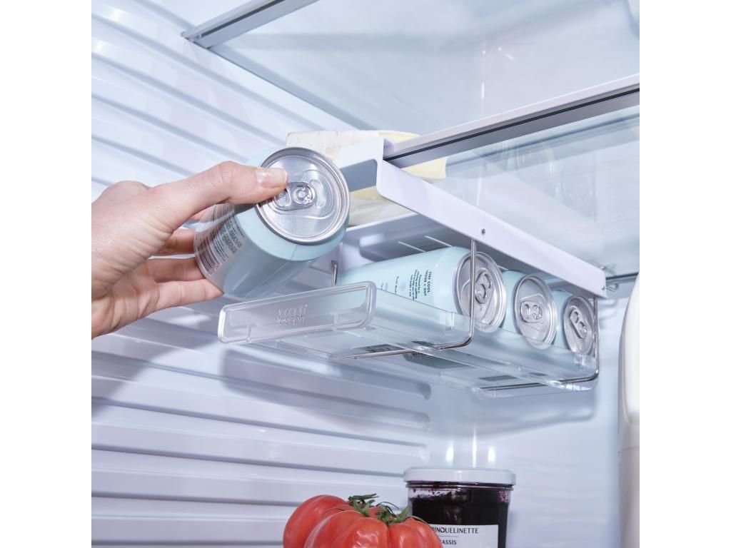 - The Joseph Joseph FRIDGESTORE under-shelf can holder is a practical solution for clear and space-saving storage of beverages directly in your refrigerator.