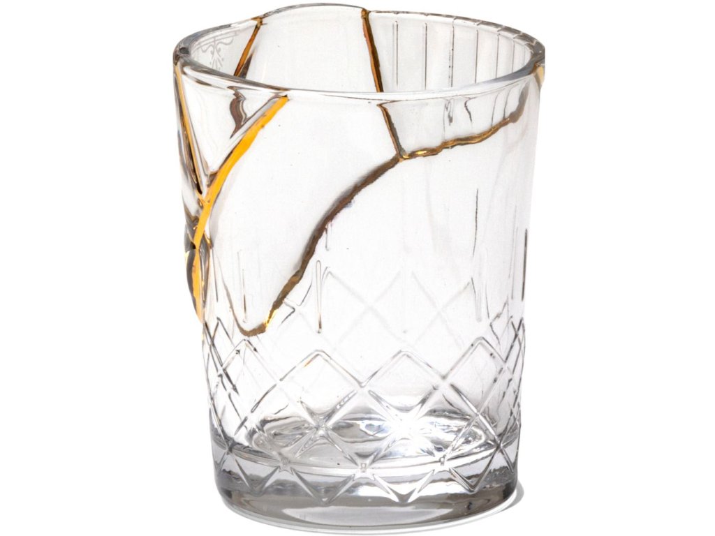 Water glass KINTSUGI 1, 10 cm, clear glass and gold, Seletti