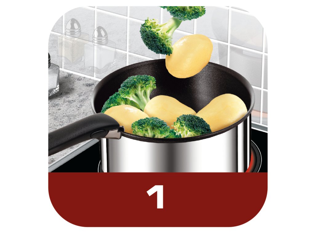 It has safety silicone rim and folding handle for easy storage with other utensils. The advantage of the Tefal Ingenio series is the stackability of the containers and the practical safe removable handle with a load capacity of 10 kg, which you simply clip onto the container and then simply take off to use with the next container. Thanks to the 100% safe, durable non-stick surface, the cookware is scratch-resistant and easy to clean. It is dishwasher safe and can be used on all types of hotplates, including induction.