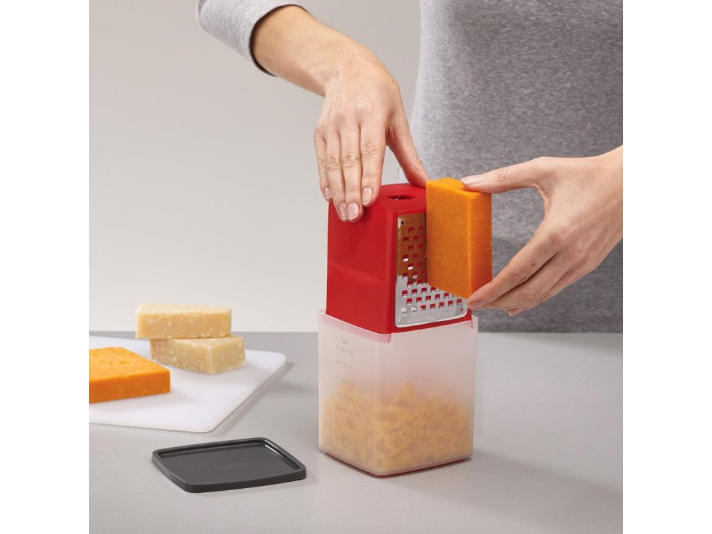 Duo is Joseph Joseph's innovative range of kitchen essentials that brings ingenious solutions to every kitchen. The range is carefully designed with an emphasis on simplicity, innovation, functionality and quality. Each product in this range is made from high quality materials and in a wide range of colours, so you can match them to your interior or other kitchen accessories and utensils. This range includes, for example, a cheese grater with grated cheese tray.