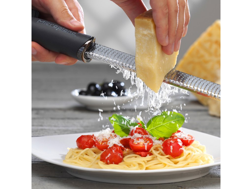 The Premium Classic range was at the beginning of the Microplane® brand story in the culinary sector. A Canadian housewife desperate for a broken grater while making an orange pie borrowed her husband's workshop rasp and was delighted to discover how easily and quickly it worked. The woodworking tool has thus become a very efficient grater, now highly valued even by professional chefs. The long and narrow design of the rasp, left in its original form, has become an iconically recognizable design of the Microplane® brand. From the workshop straight to the kitchen.