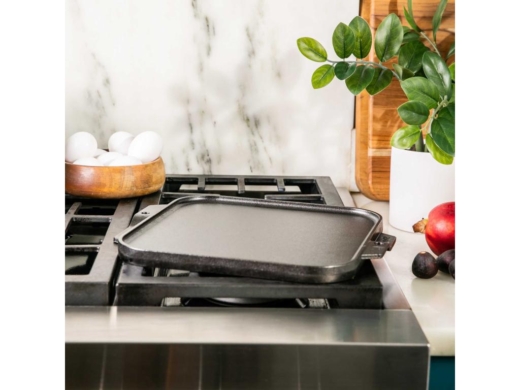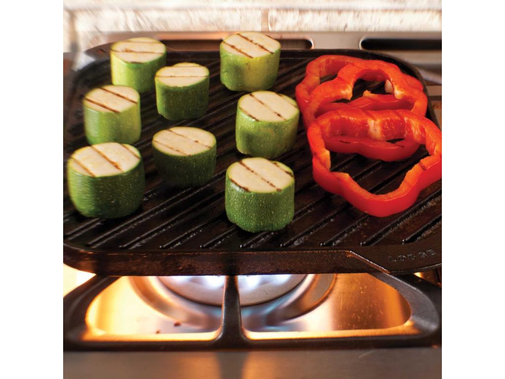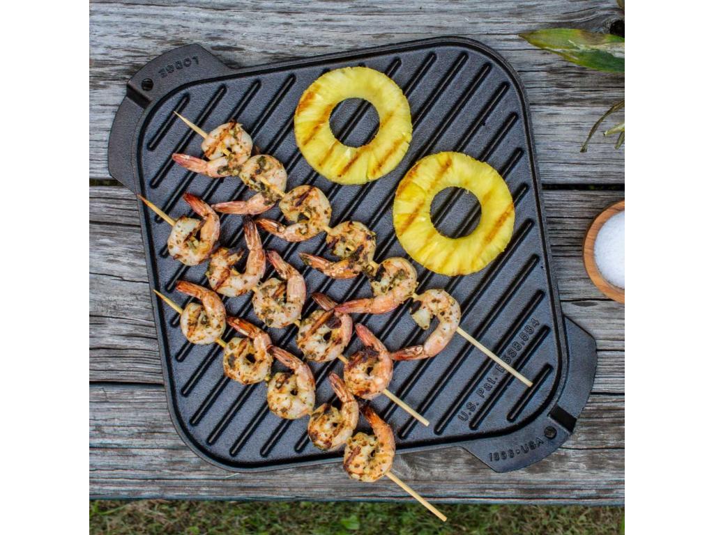 - The double-sided cast iron pan Lodge measuring 26 × 26 cm is an extremely versatile tool, ideal for use on the stove, in the oven, on the grill and over an open fire.