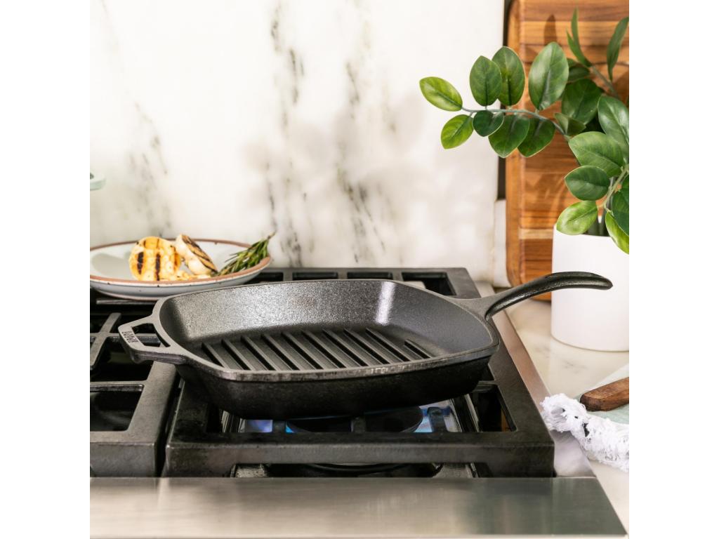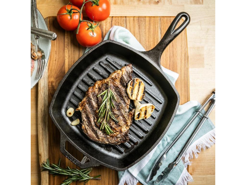 - The square cast iron grill pan Lodge is an indispensable helper for all those who love intense flavor and honest cooking.