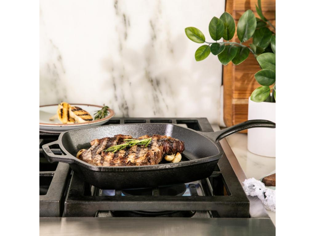 - The ribbed bottom creates a beautiful impression on meat, vegetables and cheese and allows the fat to separate naturally during cooking.