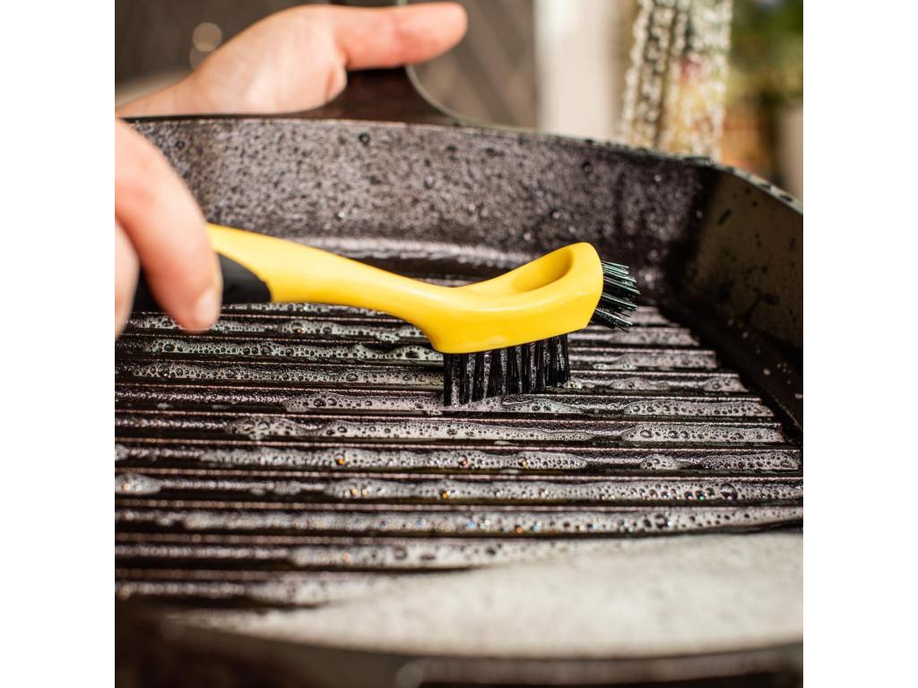 - Use a polycarbonate scraper or a dish brush for burns; a small amount of detergent is possible when needed.
