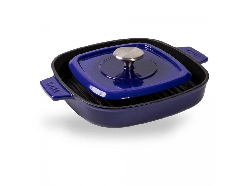 Grill pan 24 cm, for induction, with lid, blue, iron, WOLL
