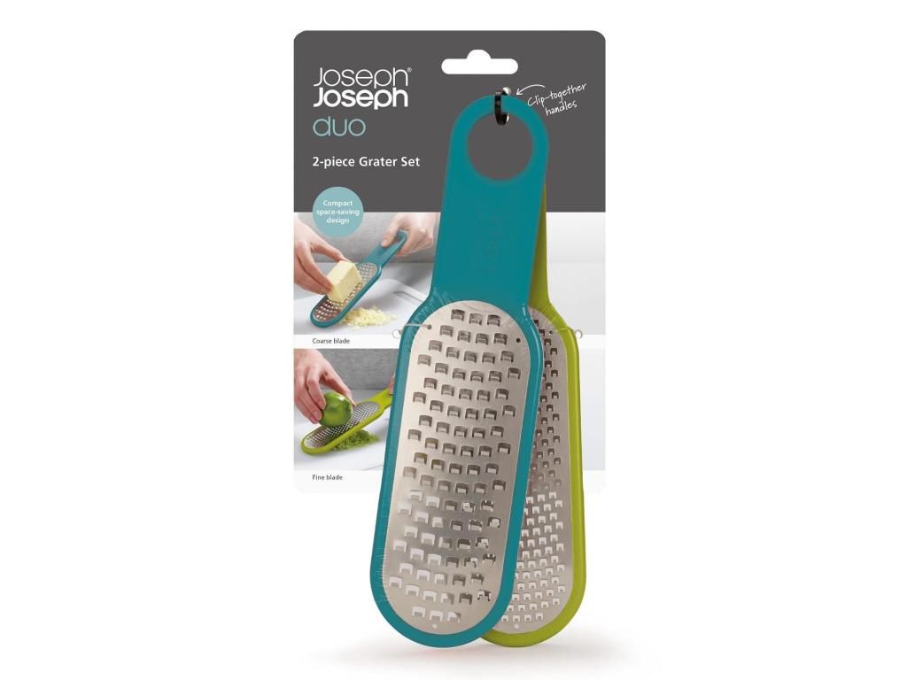 - The Joseph Joseph DUO set of two graters offers a practical solution for quick and convenient grating of cheeses, vegetables, and citrus zest for everyday cooking.
