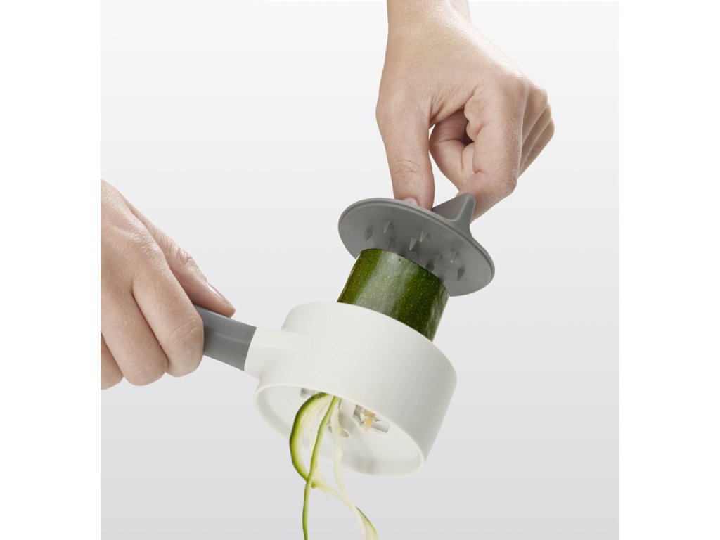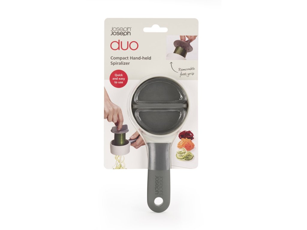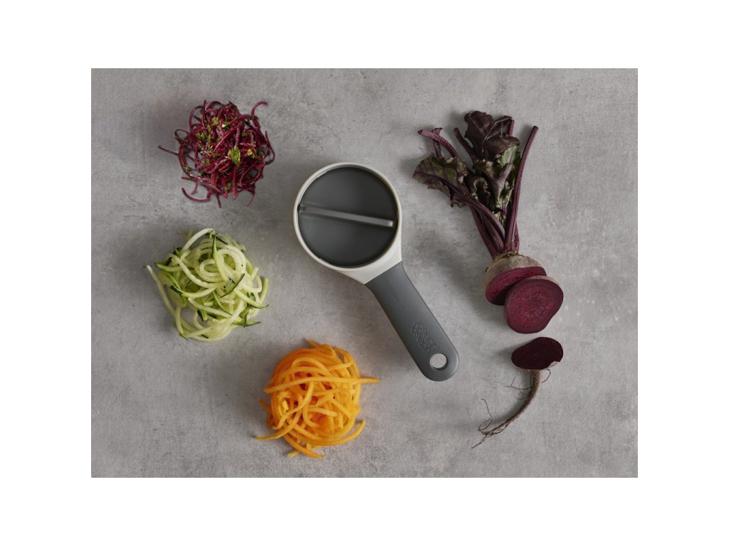 Use the handy JOSEPH JOSEPH Duo Compact handheld spiralizer for quick preparation of small quantities of vegetables. The long handle ensures a comfortable grip. Stainless steel blade set for optimum thickness of noodles.