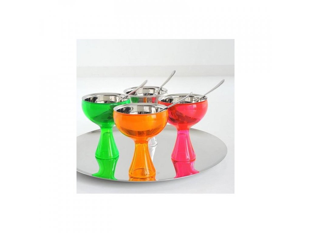 Heart-shaped ice cream goblet with spoon from the workshop of designer Miriam Mirri in collaboration with Haagen Dazs is designed for use by one or two people. The heart-shaped spoon gives everyone room to scoop their ice cream with one side of the spoon.